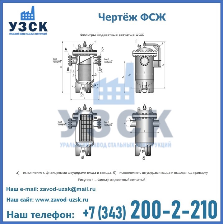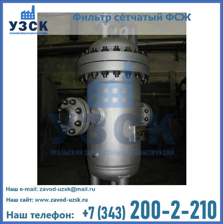 Очистку перекачиваемых жидкостей на предприятиях нефтяной, пищевой, горнорудной, фармацевтической и других отраслей промышленности эффективно выполнять с помощью жидкостного сетчатого фильтра — емкостное оборудование цилиндрической формы со съемной крышкой и элементом фильтрации внутри. Оснащенные им всасывающие линии насосных станций и установок защищены от проникновения твердых частиц в функциональные узлы гидравлической системы. Оборудование служит для перекачивания токсичных, агрессивных и иных эмульсий, суспензий, жидкостей. Купить фильтр сетчатый жидкостный ФСЖ в Риддере с гарантией производителя предлагает «Уральский завод стальных конструкций». Мы выполняем проектирование и изготовление ФСЖ по индивидуальным требованиям (климатическая зона, транспортируемая жидкость).