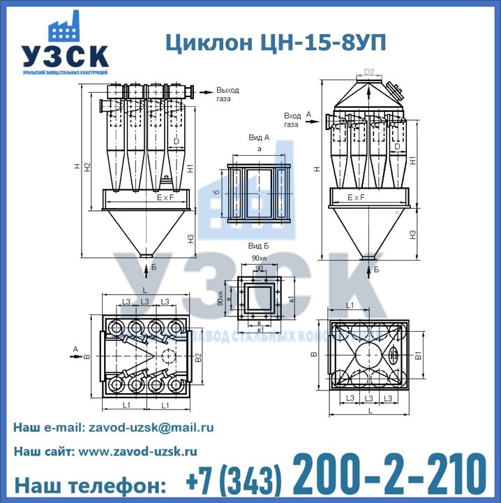 Завод «УЗСК» в Риддере предлагает большой выбор циклонов ЦН-15-500×8УП и прочих устройств, полностью укомплектованных и готовых к эксплуатации. Мы гарантируем соответствие оборудования всем требованиям ГОСТ и ТУ, износостойкость и высокую производительность предлагаемого оборудования. Уральский Завод Стальных Конструкций изготавливает и продает надежное, эффективное и производительное оборудование, имеющее длительную гарантию и большой эксплуатационный ресурс. Если требуется изготовить циклон нестандартных размеров, то такой вариант выполнения заказа тоже предусмотрен, так как предприятие имеет собственные производственные площади и надежных поставщиков. На все поставляемое или производимое оборудование имеются чертежи и прочая техническая документация. Заказать и купить циклоны или прочее оборудование высокого качества и по доступной цене можно через наш сайт или по указанному в разделе «Контакты» телефону.