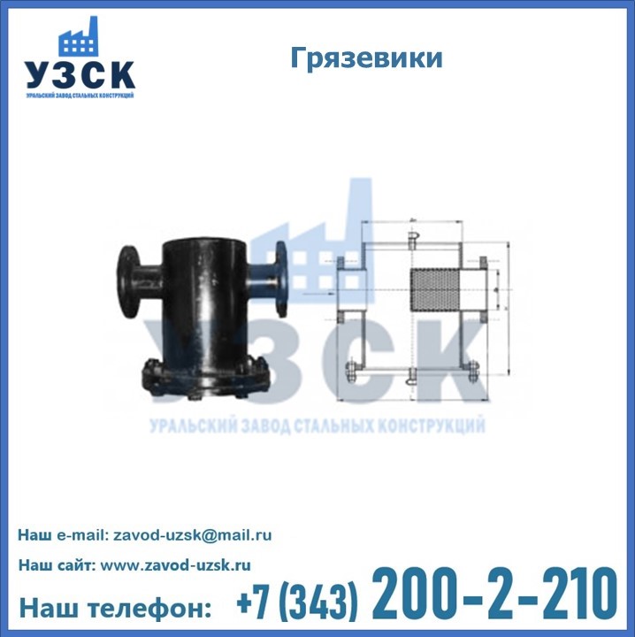 Уральский Завод Стальных Конструкций занимается производством и реализацией грязевиков в городе Риддер, в наличии устройства горизонтального и вертикального типа, соответствующие всем требованиям и стандартам, в том числе условиям «Правил устройства и безопасной эксплуатации».