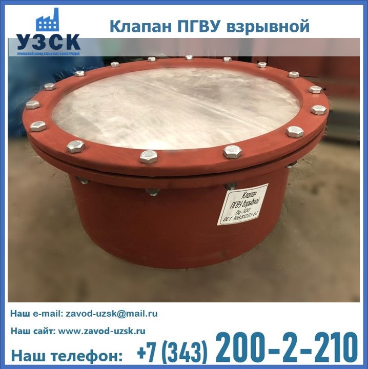 Взрывной предохранительный клапан ПГВУ в Риддере оборудуется в виде сквозного отверстия (окна) на взрывоопасном элементе энергетических установок. Такое окно закрывается специальной мембраной, а также оснащается створками или материалом, способным легко разрушиться в результате взрыва, что позволяет избежать высокого давления, образуемого взрывом.